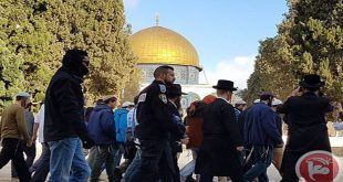 القدس المحتلة-سانا جدد مستوطنون إسرائيليون اليوم اقتحام المسجد الأقصى المبارك بحماية قوات الاحتلال. وذكرت وكالة وفا أن 28 مستوطناً اقتحموا الأقصى من جهة باب المغاربة ونفذوا جولات استفزازية في باحاته وسط حراسة مشددة من قوات الاحتلال. وينفذ المستوطنون الإسرائيليون بشكل …