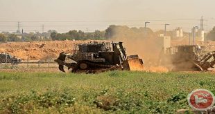 القدس المحتلة-سانا توغلت قوات الاحتلال الإسرائيلي اليوم جنوب قطاع غزة المحاصر وجرفت مساحات من أراضي الفلسطينيين. وذكرت وكالة معا أن قوات الاحتلال توغلت بعدد من الآليات شرق خان يونس جنوب القطاع وقامت بتجريف مساحات من أراضي الفلسطينيين. وتتوغل قوات الاحتلال …