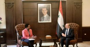 دمشق-سانا بحث وزير الإدارة المحلية والبيئة المهندس حسين مخلوف مع موريل مافيكو الممثل الجديد لصندوق