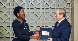 دمشق-سانا تسلم وزير الخارجية والمغتربين الدكتور فيصل المقداد أوراق اعتماد مورييل مافيكو الممثلة المقيمة الجديدة لصندوق الأمم المتحدة