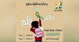 دمشق-سانا أعلنت محافظة دمشق عن افتتاح فعالية “دفتر وقلم” على أرض مدينة المعارض القديمة يوم غد الخميس الساعة الخامسة مساء.