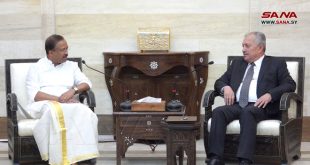 دمشق-سانا بحث رئيس مجلس الوزراء المهندس حسين عرنوس مع وزير الدولة الهندي للشؤون الخارجية ف.موراليدهاران
