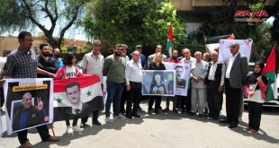 دمشق-سانا أقامت الجبهة الشعبية لتحرير فلسطين ولجان الدفاع عن الأسرى والمعتقلين الفلسطينيين داخل معتقلات الاحتلال الإسرائيلي وقفة تضامنية أمام مقر الأمم المتحدة بدمشق،
