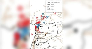 دمشق-سانا أعلن المركز الوطني للزلازل أن محطات الرصد لدى المركز سجلت 12هزة