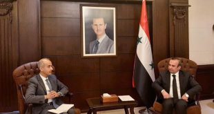 دمشق-سانا بحث وزير الإدارة المحلية والبيئة المهندس حسين مخلوف رئيس اللجنة العليا للإغاثة مع الدكتور عرفان علي كبير موظفي مكتب المديرة التنفيذية