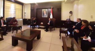 دمشق-سانا بحث رئيس اللجنة العليا للإغاثة وزير الإدارة المحلية والبيئة المهندس حسين مخلوف مع نائب مبعوث الأمم المتحدة الخاص