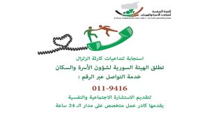 دمشق-سانا خصصت الهيئة السورية لشؤون الأسرة والسكان رقماً هاتفياً للتواصل عبره لتقديم