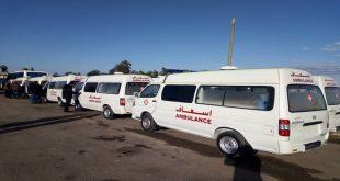 درعا-سانا دخلت عبر مركز نصيب الحدودي في درعا 10 سيارات إسعاف مقدمة من شركة ملوك للتجارة في الأردن