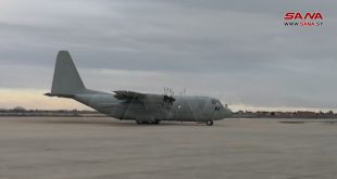 دمشق-سانا وصلت إلى مطار دمشق الدولي اليوم طائرة إماراتية محملة بـ 20 طناً من المساعدات الإنسانية تضم مواد