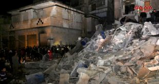 حلب-سانا أفاد مراسل سانا في حلب بانتشال 4 جثث من بناء مؤلف من خمسة طوابق في حي المشارقة