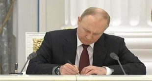 موسكو-سانا وقع الرئيس الروسي فلاديمير بوتين مساء اليوم على مرسومين يقضيان باعتراف روسيا باستقلال جمهوريتي دونيتسك ولوغانسك