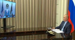 موسكو وواشنطن-سانا دعا الرئيس الروسي فلاديمير بوتين نظيره الأمريكي جو بايدن خلال مباحثاتهما عبر الانترنت اليوم إلى عدم تحميل روسيا مسؤولية الوضع حول أوكرانيا مطالباً حلف شمال الأطلسي “ناتو” بضمانات أمنية بعدم توسيع الحلف شرقاً. وجاء في بيان أصدره الكرملين …