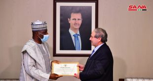 دمشق-سانا تسلم الدكتور فيصل المقداد وزير الخارجية والمغتربين اليوم أوراق اعتماد القائم بأعمال جمهورية نيجيريا الاتحادية في دمشق ابراهيم يونوسا محمد. ورحب الوزير المقداد بالقائم بالأعمال متمنيا له التوفيق والنجاح في أداء مهامه ومعرباً عن تطلعه إلى تعميق العلاقات بين …