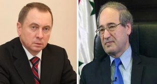 دمشق-سانا بحث وزير الخارجية والمغتربين الدكتور فيصل المقداد خلال اتصال هاتفي اليوم مع وزير خارجية بيلاروس فلاديمير ماكي العلاقات الثنائية بين البلدين في ظل التحديات المشتركة التي تواجههما وضرورة مضاعفة الجهود لتعزيز هذه العلاقات والارتقاء بها بما يحقق طموحات الشعبين …