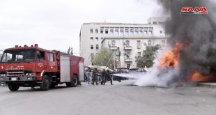 دمشق-سانا أخمد عناصر فوج إطفاء دمشق اليوم حريقاً اندلع في سيارة من نوع شام في حي البرامكة بدمشق واقتصرت الخسائر على الماديات. وبين مصدر في قيادة شرطة دمشق لمراسل سانا أن الحريق نجم عن ماس كهربائي اندلع في سيارة سياحية …