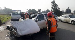 حمص-سانا توفي شخص وأصيب ثلاثة آخرون اليوم جراء حادث سير على الطريق الدولي حمص دمشق بالقرب من جسر شنشار جنوب حمص. وذكر العميد غياث عاقل مدير الدفاع المدني بحمص لمراسل سانا أن الحادث نجم عن اصطدام سيارة سياحية مع سيارة …