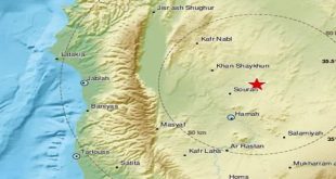 دمشق-سانا وقعت هزة أرضية بقوة 4.1 درجات على مقياس ريختر عصر اليوم شمال شرق مدينة حماة. وذكر المركز الوطني للزلازل أن محطات الشبكة الوطنية للرصد الزلزالي سجلت هزة أرضية بقوة 4.1 درجات على مقياس ريختر شمال شرق مدينة حماة بحدود …
