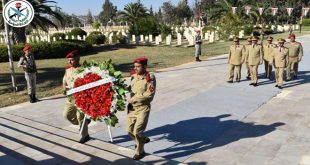 دمشق-سانا بمناسبة الذكرى الخامسة والسبعين لتأسيس الجيش العربي السوري قام قادة المناطق العسكرية بزيارة مثاوي الشهداء ووضعوا أكاليل من الزهر باسم السيد الرئيس الفريق بشار الأسد القائد العام للجيش والقوات المسلحة على النصب التذكارية وقرؤوا الفاتحة على أرواح الشهداء الطاهرة …