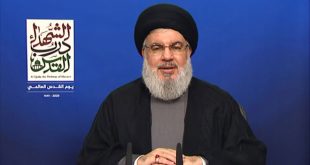 بيروت-سانا أكد الأمين العام لحزب الله السيد حسن نصرالله أن القضية الفلسطينية تشكل المحور الأساسي وأهم الأولويات لقوى المقاومة في المنطقة والتي لا يمكن التخلي عنها. وأوضح السيد نصرالله في كلمة اليوم بمناسبة يوم القدس العالمي أن هذه المناسبة تعبير …