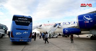 دمشق-سانا وصلت إلى مطار دمشق الدولي مساء اليوم طائرة تابعة لـ السورية للطيران تقل 250 راكباً من السوريين العالقين في الخارج قادمة من مطار الخرطوم في السودان وذلك تنفيذاً لقرارات الفريق الحكومي المعني بالتصدي لفيروس كورونا. وتم نقل ركاب الطائرة …