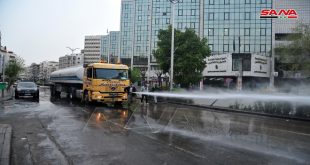 دمشق-حلب-سانا تتواصل حملات التنظيف والتعقيم في أحياء وشوارع مدينتي دمشق وحلب إضافة إلى غسل حاويات القمامة وذلك ضمن الإجراءات الاحترازية للتصدي لفيروس كورونا المستجد. وفي تصريح لـ سانا أوضح مدير النظافة في محافظة دمشق المهندس عماد العلي أن ورشات المديرية …