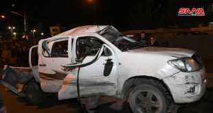 دمشق-سانا أصيب مدير الجاهزية في المؤسسة العربية للإعلان الزميل نبيل خضور بجروح نتيجة انفجار عبوة ناسفة زرعها إرهابيون بسيارته في مدخل نفق الأمويين بمدينة دمشق. وذكر مصدر في قيادة شرطة دمشق لموفد سانا إلى مكان التفجير أن عبوة ناسفة زرعها …