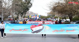 دمشق-سانا بمشاركة نحو خمسة آلاف شاب وشابة من فروع دمشق وريفها والقنيطرة نظمت منظمة اتحاد شبيبة الثورة اليوم مسيراً شبابياً كرنفالياً بعنوان “حبي الأكبر سورية”. وانطلق المسير الذي شهد مشاركة شبابية وجماهيرية واسعة من ساحة العباسيين وصولاً إلى باب توما …