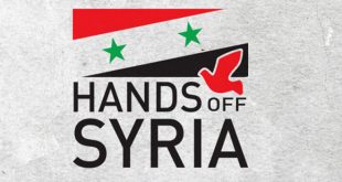لندن-سانا دعت مجموعة “إرفعوا أيديكم عن سورية” البريطانية اليوم المواطنين البريطانيين إلى الخروج في مظاهرة شعبية وسط لندن وأمام مقر إقامة رئيسة الوزراء تيريزا ماي في “داوننغ ستريت” للتعبير عن الرفض الشعبي لمشاركة بريطانيا في أي عدوان عسكري قد يشن ضد …