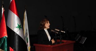 دمشق-سانا أكدت المستشارة السياسية والإعلامية في رئاسة الجمهورية رئيسة مجلس أمناء مؤسسة القدس الدولية في سورية الدكتورة بثينة شعبان الحاجة إلى يقظة عربية شاملة ووضع استراتيجيات عربية موحدة لمقاومة كيان الاحتلال الإسرائيلي الغاصب والتصدي للمخططات الرامية إلى النيل من وجود …