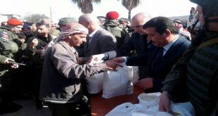 درعا-سانا وزعت محافظة درعا اليوم مساعدات مقدمة من الحكومة الروسية إلى 400 عائلة من المهجرين وذوي الشهداء في بلدة قرفا وذلك ضمن احتفالية في البلدة بحضور حشد من الفعاليات الرسمية والأهلية. وتضمنت الفعالية تقديم سلل غذائية تحتوي مواد متنوعة إضافة إلى …