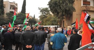 دمشق-سانا أقامت الأحزاب والقوى الوطنية السورية والفلسطينية صباح اليوم اعتصاما ووقفة احتجاجية أمام مكتب هيئة الأمم المتحدة بدمشق بالمزة احتجاجا على قرار الرئيس الأمريكي دونالد ترامب نقل سفارة بلاده الى القدس المحتلة. وعبر المشاركون خلال الاعتصام عن استنكارهم وغضبهم وسخطهم …