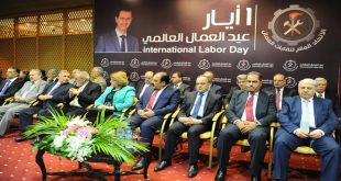 ريف دمشق-سانا بمناسبة عيد العمال العالمي أقام الاتحاد العام لنقابات العمال اليوم مهرجانا مركزيا في مجمع صحارى بريف دمشق. وأكد المهندس هلال الهلال الامين القطري المساعد لحزب البعث العربي الاشتراكي في كلمته خلال الاحتفال أن ما يميز الشعب السوري هو …