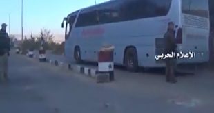حلب وريف دمشق-سانا توجهت صباح اليوم 45 حافلة تقل على متنها المئات من أهالي بلدتي كفريا والفوعة باتجاه منطقة الراشدين غرب حلب بالتوازي مع خروج 11 حافلة من منطقة الزبداني تنقل عددا من المسلحين وبعض أفراد عائلاتهم وذلك في إطار إكمال …