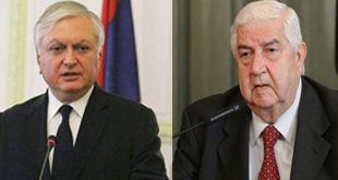 دمشق-سانا بمناسبة الذكرى الخامسة والعشرين لإقامة العلاقات الدبلوماسية بين الجمهورية العربية السورية وجمهورية أرمينيا تبادل وليد المعلم نائب رئيس مجلس الوزراء وزير الخارجية والمغتربين وادوارد نالبنديان وزير خارجية ارمينيا الرسائل بهذه المناسبة. وأكد المعلم في رسالته أن إقامة العلاقات الدبلوماسية …