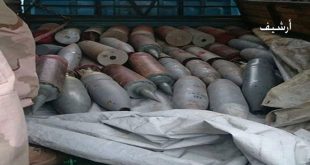 حماة-سانا ضبطت الجهات المختصة في مدينة حماة خلال عملية مداهمة مستودعا للتنظيمات الإرهابية يحتوي أسلحة وذخائر ومواد شديدة الانفجار تستخدم في تفخيخ العبوات الناسفة وكمية من مادة “الأمونيوم” السام بمزرعة في الجهة الجنوبية من المدينة. وأفاد مصدر في قيادة شرطة حماة …