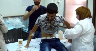 محافظات-سانا أصيب 10 أشخاص اليوم بجروح جراء اعتداءات إرهابية بالرصاص المتفجر والقذائف الصاروخية على مناطق وأحياء سكنية في حلب وريف دمشق ودرعا. ففي حلب أصيب 4 أشخاص بجروح جراء قذائف صاروخية أطلقتها المجموعات الإرهابية على حيي الحمدانية وصلاح الدين السكنيين ومحيط …