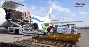 دمشق-سانا وصلت اليوم طائرة تحمل دفعة جديدة من المساعدات الباكستانية الإنسانية إلى مطار دمشق الدولي، تضم 17 طناً من مواد