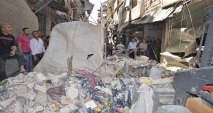 ارتقاء 6 شهداء وإصابة 40 شخصا بجروح بينهم نساء وأطفال جراء اعتداء التنظيمات الارهابية بقذائف صاروخية على أحياء سكنية بمدينة حلب