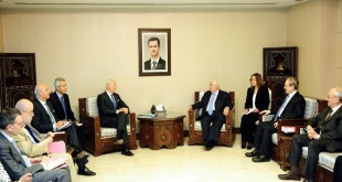 دمشق-سانا استقبل وليد المعلم نائب رئيس مجلس الوزراء وزير الخارجية والمغتربين صباح اليوم ستافان دى ميستورا المبعوث الخاص للأمين العام للأمم المتحدة إلى سورية والوفد المرافق. وعرض دي ميستورا الأفكار والجهود المبذولة لإنجاح المحادثات حول الأزمة في سورية المقرر استئنافها …