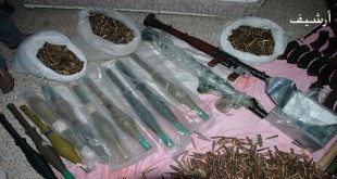 حمص-سانا ضبط عناصر ضابطة جمارك المكافحة في حمص ظهر اليوم سيارة بداخلها قنابل وذخيرة رشاشات على الطريق المؤدية إلى منطقة مصياف بريف حماة. وذكر مصدر في الضابطة في تصريح لمراسل سانا أنه بعد الرصد والمتابعة أوقفت إحدى الدوريات سيارة سياحية …
