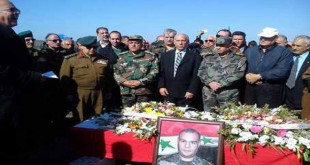حمص-سانا شيع اليوم جثمان الشهيد المراسل الحربي النقيب شرف وسيم النقري إلى مثواه الأخير في قرية رام العنز بريف حمص الغربي بحضور عدد من ضباط قيادة المنطقة الوسطى وحشد شعبي كبير. وعبر والد الشهيد عن فخره باستشهاد ولده في سبيل الوطن …