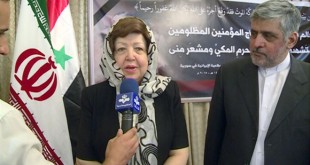 دمشق-سانا قدمت نائب رئيس الجمهورية الدكتورة نجاح العطار التعازي اليوم بالحجاج الإيرانيين الذين قضوا في كارثة منى بمكة المكرمة وذلك في مبنى سفارة الجمهورية الإسلامية الإيرانية في المزة. وعبرت العطار في تصريح للصحفيين عن تعازيها لذوي الحجاج وللشعب الإيراني الصديق …