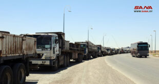 دير الزور-سانا تسلمت شركة كهرباء دير الزور اليوم شحنة من التجهيزات الكهربائية نقلتها 27 شاحنة،