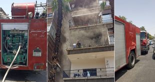 دمشق-سانا أخمد عناصر فوج إطفاء دمشق اليوم حريقاً نشب ضمن منزل في منطقة المزرعة بدمشق.