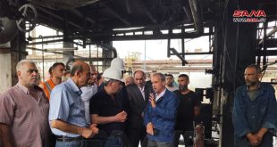 حمص-سانا اطلع وزير النفط والثروة المعدنية، الدكتور فراس قدور على الأضرار التي نجمت عن الحريق الذي نشب في الوحدة 100 بمصفاة