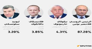 موسكو-سانا أعلنت رئيسة لجنة الانتخابات المركزية في روسيا إيلا بامفيلوفا أن نتائج الانتخابات الرئاسية الرسمية