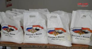 ريف دمشق-سانا وزع عسكريون روسيون من مركز التنسيق الروسي مساعدات إنسانية لأهالي