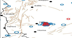 حماة-سانا أعلن المركز الوطني للزلازل أن محطات الرصد الزلزالي سجلت 6 هزات أرضية ضعيفة خلال يوم أمس ولغاية الساعة الثامنة من صباح اليوم.