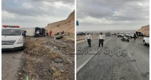 دمشق-سانا توفي شخص وأصيب 15 آخرون بجروح، جراء حادث تدهور بولمان على أوتوستراد دمشق حمص.