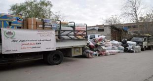 طرطوس-سانا سير فرع المؤسسة السورية للتجارة في طرطوس اليوم عشر سيارات محملة بـ 1012 سلة تحوي مواد غذائية وإغاثية